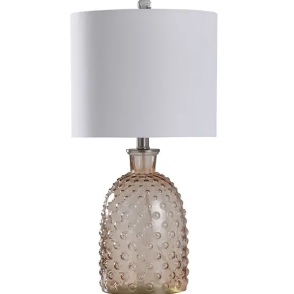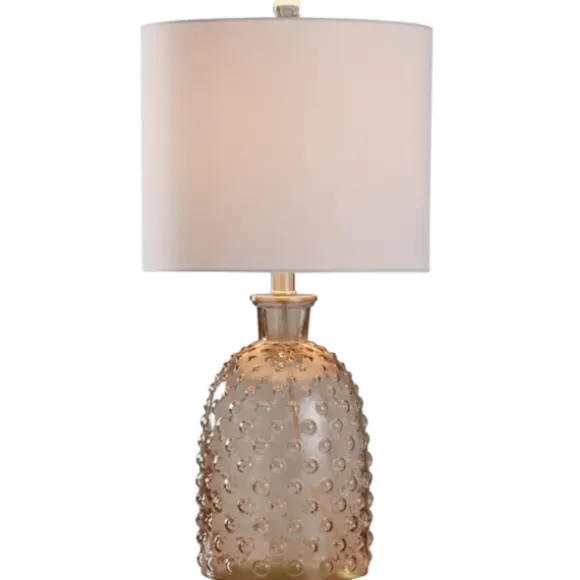 Give Your Home A Fun, Unique Embellishment With This Amber Tinted Glass Jar Table Lamp. You’Ll Love How Its Warm, Vintage Design Adds A Nostalgic Style To Your Space! Lamp Measures 24H In.Crafted Of Glassamber Tinted Finishjar Base With Hobnail Texturestainless Steel Accents Hardback Drum Shade In White Fabric Shade Measures 10H X 12 In. In Diametersocket Accommodates A 100-Watt, Type-A Bulbfeatures A Clear, Plug-In Cordcare: Dust With A Soft, Dry Cloth. Do Not Exceed Specified Wattage.This Item Is Available At Kirklands.Com Only, Not Available In Stores. Please Note: This Item Cannot Be Shipped To Apo/Fpo Addresses.Warning:Cancer And Reproductive Harm – For More Information Go Towww.P65Warnings.Ca.Gov .