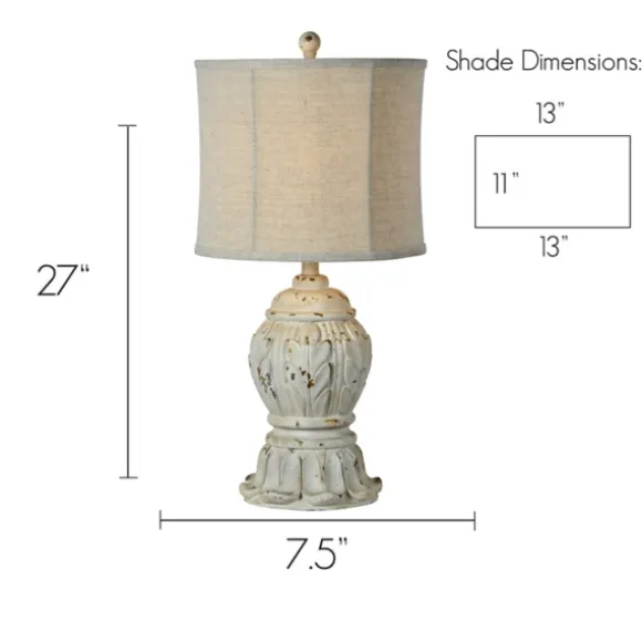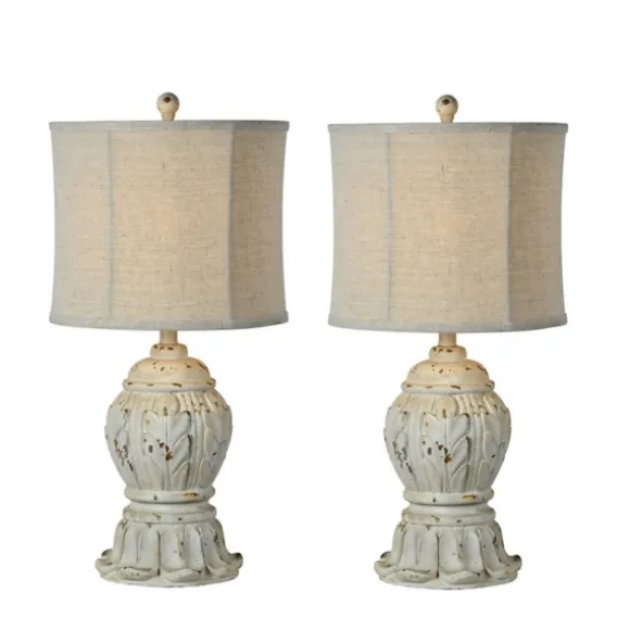 Our Antique Ivory Distressed Table Lamps Are Ones That Will Never Go Out Of Style! The Distressed Finish And Ornate Design Will Look Great On Any Table.Set Include Two (2) Lampseach Lamp Measures 27H In.Crafted Of Resindistressed Ivory Finishcarved Basesoftback Bell Shade In Oatmeal Linenshade Measures 11H X 13 In. In Diametersocket Accommodates A 100-Watt, E26 Bulbfeatures A Clear, Plug-In Cordcare:Dust With A Soft, Dry Cloth. Do Not Exceed Specified Wattage. This Item Is Available At Kirklands.Com Only, Not Available In Stores. Please Note: This Item Cannot Be Shipped To Apo/Fpo Addresses.Warning:Cancer And Reproductive Harm – For More Information Go Towww.P65Warnings.Ca.Gov .