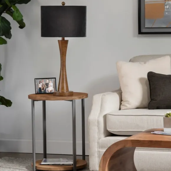 Kirkland’s Home Accent & End Tables-Brown Wood And Metal 3-Tier Side Table