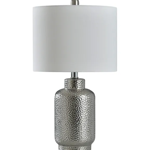 Lighten Up Your Living Space With This Stunning Silver Selena Hammered Table Lamp! Its Detailed, Textured Design Is Perfect For Your Contemporary Style.Lamp Measures 22H In.Crafted Of Ceramichammered Silver Finishcylinder Basehardback Shade In White Fabric Shade Measures 9H X 12 In. In Diametersocket Accommodates A 60-Watt Bulb; Two-Way Switchfeatures A Plug-In Cordcare:Dust With A Soft, Dry Cloth. Do Not Exceed Specified Wattage.This Item Is Available At Kirklands.Com Only, Not Available In Stores. Please Note: This Item Cannot Be Shipped To Apo/Fpo Addresses.