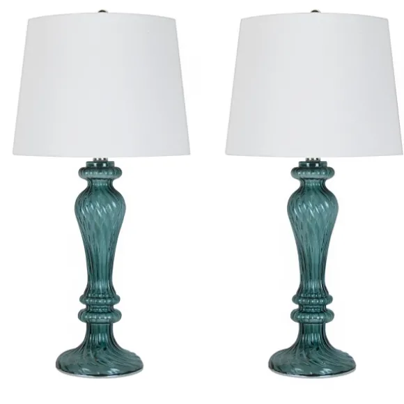 Kirkland’s Home Table Lamps-Turquoise Glass Table Lamps, Set Of 2