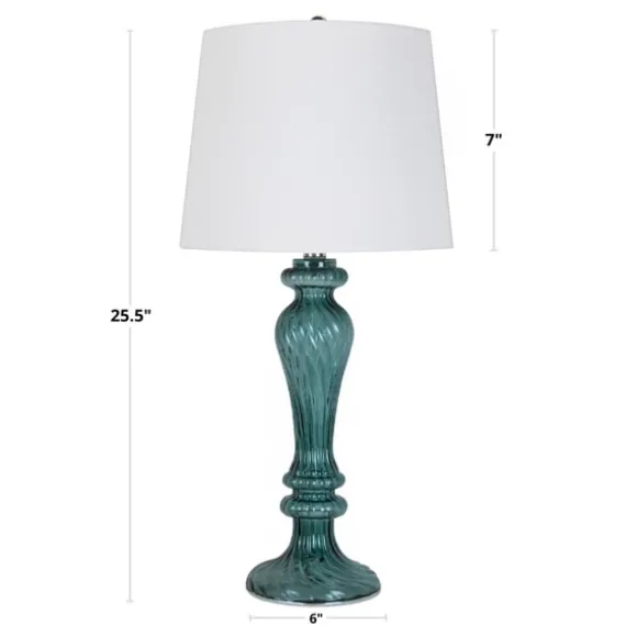These Turquoise Glass Table Lamps Will Bring Elegance With Them Wherever The Go! Classic And Eye-Catching, They’Ll Give Your Space A Beautifully Cohesive Look. Lamp Measures 25.5H In.Crafted Of Glassturquoise Finishcurved Spindle Basehardback Drum Shade In White Linenshade Measures 7H X 12 In. In Diametersocket Accommodates A 100-Watt Bulbfeatures A Plug-In Cordcare: Dust With A Soft, Dry Cloth. Do Not Exceed Specified Wattage.This Item Is Available At Kirklands.Com Only, Not Available In Stores. Please Note: This Item Cannot Be Shipped To Apo/Fpo Addresses.Warning:Cancer And Reproductive Harm – For More Information Go Towww.P65Warnings.Ca.Gov .
