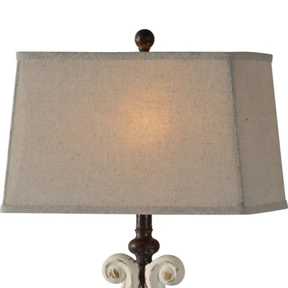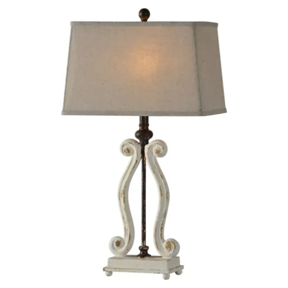 The Carved, Curved Details On These Weathered Cream Harp Table Lamps Give Them An Eye-Catching Silhouette That Pairs Beautifully With Their Antiqued Finish.Set Includes Two (2) Lampseach Lamp Measures 29H In.Crafted Of Resinwhite And Bronze Finish With Gold Accentsbase Features Curved Harp Detailssoftback Rectangle Shade In Dark Oatmeal Fabricshade Measures 16L X 10W X 10H In.Socket Accommodates One (1) Type-A, 100-Watt Bulbfeatures A Plug-In Cordcare:Dust With A Soft, Dry Cloth. Do Not Exceed Specified Wattage.This Item Is Available At Kirklands.Com Only, Not Available In Stores. Please Note: This Item Cannot Be Shipped To Apo/Fpo Addresses.Warning:Cancer And Reproductive Harm – For More Information Go Towww.P65Warnings.Ca.Gov .