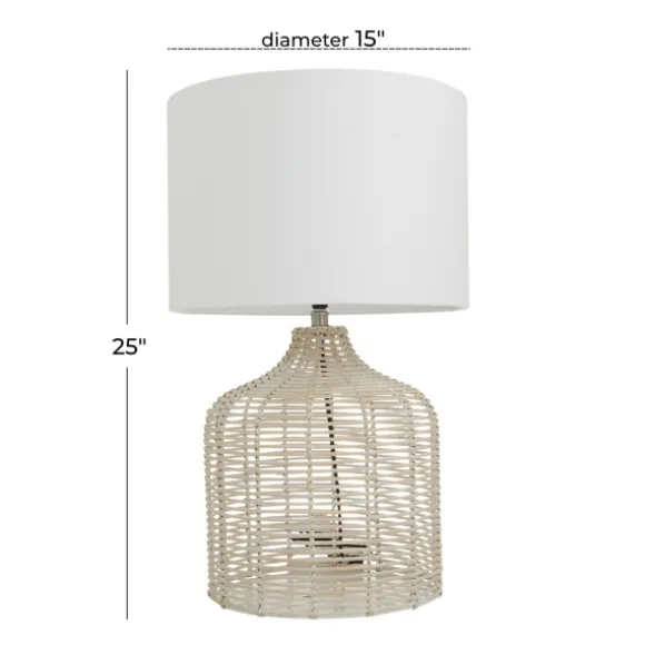 Light Up Any Space With A Chic Style With This Ivory Woven Rattan Table Lamp. You’Ll Love How Its Light, Woven Design Adds A Coastal Charm To Your Home! Lamp Measures 25H In.Crafted Of Rattanivory Finishwoven Rattan, Tapered Cylinder Base Hardback Drum Shade In White Linen Fabric Shade Measures 15 In. In Diametersocket Accommodates A Type-A Bulbfeatures A Black, Plug-In Cordcare: Dust With A Soft, Dry Cloth. Do Not Exceed Specified Wattage.This Item Is Available At Kirklands.Com Only, Not Available In Stores. Please Note: This Item Cannot Be Shipped To Apo/Fpo Addresses.