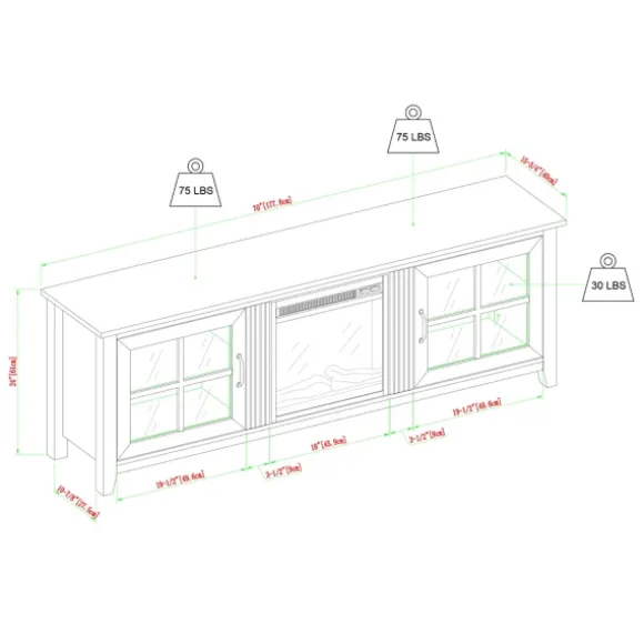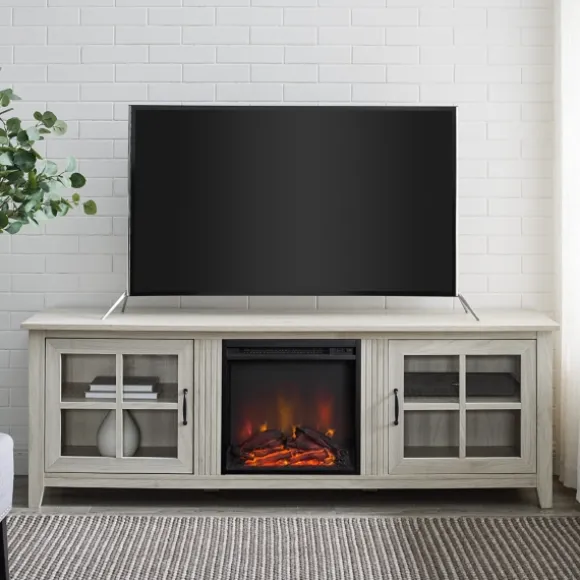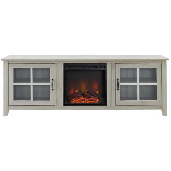 Nothing Makes A Space Cozy Like A Warm Fire! This Whitewash Windowpane Fireplace Cabinet Will Give You All The Warmth And Ambiance Of A Real Fire With None Of The Upkeep. It’S The Perfect Thing For Your Living Room Or Den! Cabinet Measures 70L X 16W X 24H In.Crafted Of Warp-Resistant Wood Composite, Tempered Glass, And Metalwhitewash Finish With Black Hardwarefeatures Window Cabinet Doorsaccomodates Flat-Panel Tvs Up To 85 In.One (1) Shelf Inside Each Cabinetincludes An 18-Inch Electric Fireplace Insert With A Plug-In Cordalso Includes Cable Management Portssome Assembly Requirednot Intended For Commercial Usecare: Wipe With Soft, Damp Cloth.This Item Is Available At Kirklands.Com Only, Not Available In Stores. Please Note: This Item Cannot Be Shipped To Apo/Fpo Addresses.Warning:This Product Can Expose You To Chemicals Including Dust And Phthalates Which Are Known To The State Of California To Cause Cancer And Birth Defects Or Other Reproductive Harm.For More Information Go Towww.P65Warnings.Ca.Gov .