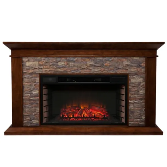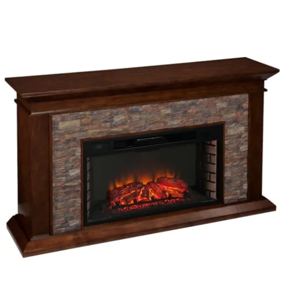 Kirkland’s Home Tv Stands & Media Consoles-Whisky Maple And Stone Electric Fireplace