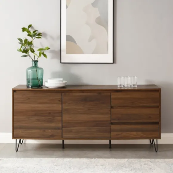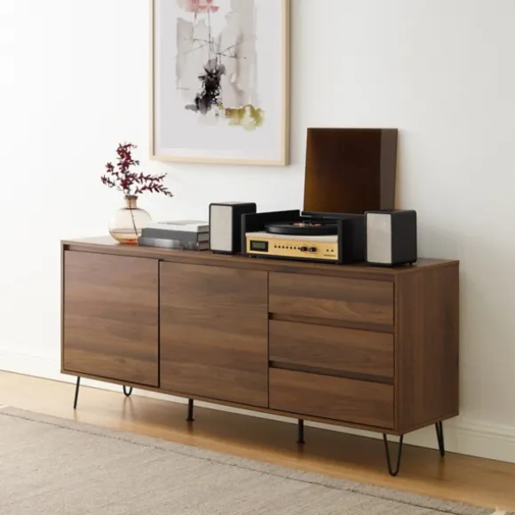 The Brown Wood Hairpin Legs Media Cabinet Is Sure To Bring Sleek, Mid-Century Modern Character To Your Space. Whether It’S Used As A Tv Stand Or A Dining Room Buffet, It Offers Plenty Of Storage Space For Decor! Cabinet Measures 63L X 15.75W X 27.25H In.Crafted Of Wood And Steelbrown Wood Finishblack Leg Finishfeatures Three (3) Drawers And Two (2) Interior Shelvesrectangular Shapehairpin Legssupport Tvs Up To 65 In.Drawer Weight Capacity: 50 Lbs. Eachshelf Weight Capacity: 15 Lbs. Eachassembly Requirednot Intended For Commercial Usecare: Dust With A Soft, Dry Cloth.This Item Is Available At Kirklands.Com Only, Not Available In Stores. Please Note: This Item Cannot Be Shipped To Apo/Fpo Addresses.Warning:This Product Can Expose You To Chemicals Including Wood Dust And Lead Which Is Known To The State Of California To Cause Cancer And Birth Defects Or Other Reproductive Harm.For More Information Go Towww.P65Warnings.Ca.Gov .