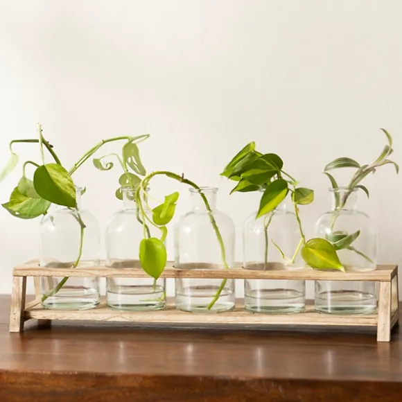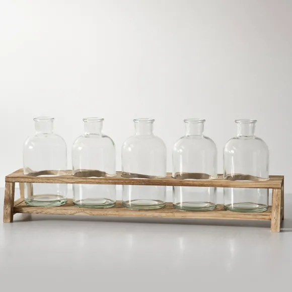 Our Glass Bottle Vase And Crate 5-Pc. Set Is The Perfect Way To Showcase Your Single Flower Stems. Style It On Any Coffee Table Or Dining Table As A Lovely Centerpiece. Overall Set Measures 19.7L X 5.1W X 7.9H In.Crafted Of Glass And Woodclear Glass Vase Finishnatural Wood Crate Finishfeatures Five (5) Vases And One (1) Crate Runnercare: Dust With A Soft, Dry Cloth.Contact Your Local Kirkland’S Store For Availability. Quantities And Selection May Vary By Location.