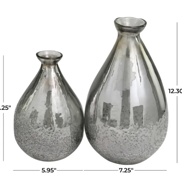 Our Silver Glass Teardrop Textured Vases Are Perfect For Your Modern Home! The Sleek Design And Textured Bottom Create An Eye-Catching Contrast That You Will Love To Place On Your Stylish Tabletops! Set Includes Two (2) Vaseslarge Vase Measures 12.3H X 7.35 In. In Diametersmall Vase Measures 9.25H X 6 In. In Diametercrafted Of Glasssilver Finishfeatures Teardrop Shape Design With Textured Bottomweight: 3.87 Lbs. Eachfor Decorative Use Onlycare: Wipe With Soft, Damp Cloth. Not Safe For Outdoor Use.This Item Is Available At Kirklands.Com Only, Not Available In Stores. Please Note: This Item Cannot Be Shipped To Apo/Fpo Addresses.