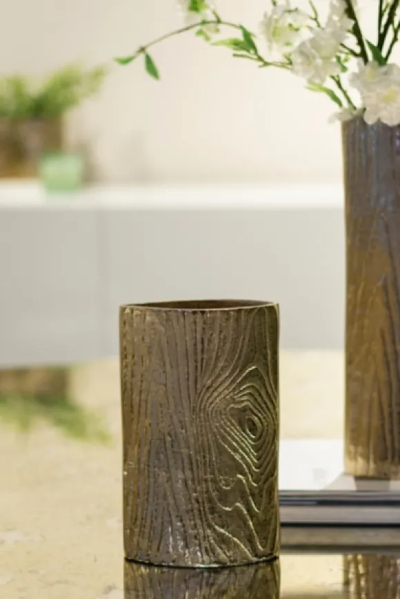 Showcase Any Faux Floral Arrangement In Rustic, Elegant Style Using This Gold Metal Timber Scape Vase! This Polished Piece Will Look Lovely With Modern Farmhouse And Contemporary Decor. Vase Measures 6.1L X 2.6W X 9.8H In.Crafted Of Metaloval Shapegold Finishfeatures Timber Scape Patternfor Decorative Use Onlycare: Dust With A Soft, Dry Cloth.This Item Is Available At Kirklands.Com Only, Not Available In Stores. Please Note: This Item Cannot Be Shipped To Apo/Fpo Addresses.