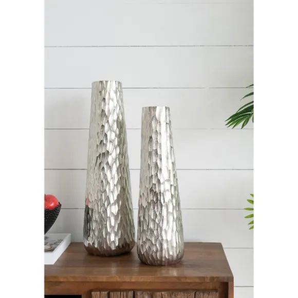 Add A Luxurious Shine To Your Tabletop With This Silver Oblong Dimpled Vase! Featuring A Textured Design, This Vase Is Glamorous On Its Own Or With A Decorative Bouquet. Vase Measures 19.3H X 6.3 In. In Diameter Crafted Of Metalsilver Finishoblong Shapefeatures Dimpled Detailsfor Decorative Use Onlycare: Dust With A Soft, Dry Cloth. Rinse Inside With Water. Not Safe For Outdoor Use.This Item Is Available At Kirklands.Com Only, Not Available In Stores. Please Note: This Item Cannot Be Shipped To Apo/Fpo Addresses.