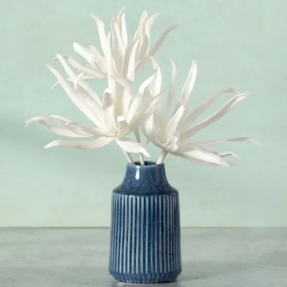 Bring A Refreshing Update To Any Bookshelf Or Accent Table With This Blue Reactive Ribbed Vase. You’Ll Love How It Eleva…