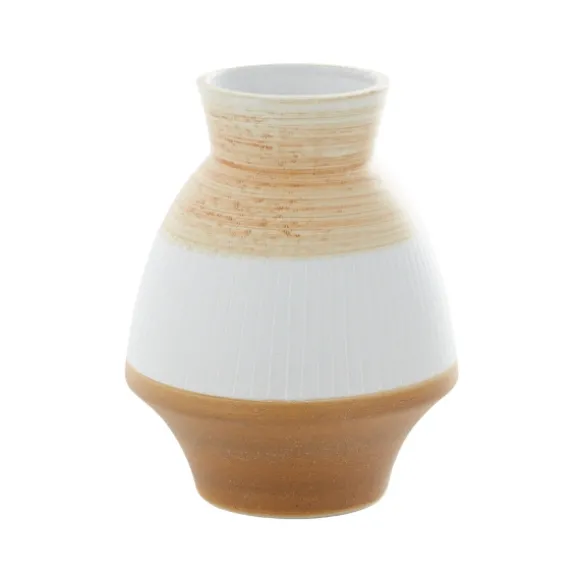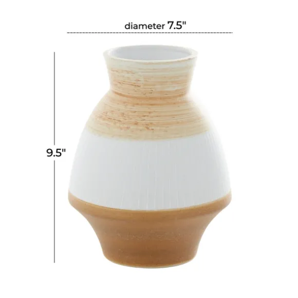 The Tan And White Striped Coastal Ceramic Vase Features A Round Body With A Tapered Opening And Base. Coastal Shades Of Tan Remind Us Of Seashells On The Beach. Vase Measures 9.5H X 7.5 In. In Diametercrafted Of Ceramicround Body With Tapered Opening And Base And Glazed Finishfeatures Hues Of Tan, White, And Terracottadetailed With Linear Vertical Groovescoastal Stylefor Decorative Use Onlycare: Dust With A Soft, Dry Cloth.This Item Is Available At Kirklands.Com Only, Not Available In Stores. Please Note: This Item Cannot Be Shipped To Apo/Fpo Addresses.
