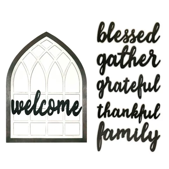 Switch Up Your Sentiment Depending On Your Mood With Our White Wood Interchangeable Arch Wall Plaque. You’Ll Love Having This Charming And Customizable Plaque In Your Home. Plaque Measures 17L X 0.63W X 24H In. Crafted Of Wood Black Frame Finish White Background Finish Features Arched Design Features Interchangeable Phrases “Welcome”, “Blessed”, “Gather”, “Grateful”, “Thankful”, And “Family” Hues Of Black And White Weight: 2 Lbs. Hangs From Back-Mounted Hardware Care: Dust With A Soft, Dry Cloth.This Item Is Available At Kirklands.Com Only, Not Available In Stores. Please Note: This Item Cannot Be Shipped To Apo/Fpo Addresses.
