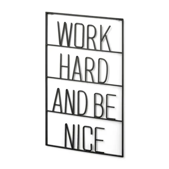 Give Yourself Some Inspiration With This Word Hard And Be Nice Metal Wall Plaque. You’Ll Love Seeing This Endearing Reminder On Your Walls Every Day! Plaque Measures 17.33L X 0.52W X 25.99H In.Crafted Of Metal Black Finishfeatures The Phrase “Work Hard And Be Nice” Weight: 1.92 Lbs.Hangs From Back-Mounted Hardwarecare: Dust With A Soft, Dry Cloth.This Item Is Available At Kirklands.Com Only, Not Available In Stores. Please Note: This Item Cannot Be Shipped To Apo/Fpo Addresses.