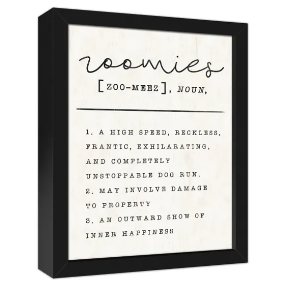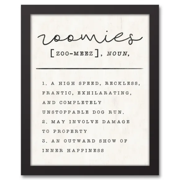 If You’Ve Ever Seen A Dog With Zoomies, You’Ll Get A Kick Out Of This Zoomies Framed Canvas Art Print. Add It To Your Wall For A Good Laugh Every Now And Then.Framed Print Measures 12.73L X 1.25W X 15.73H In. Print Measures 14L X 11H In. Digitally Printed On Genuine Artist Canvas Uses Custom-Developed, Archival Pigment Based Inks Black Frame Finish Features The Phrase “Zoomies [Zoo-Meez], Noun” Followed By Three Definitions Hues Of Gray And White Weight: 1.59 Lbs. Hangs From Back-Mounted Hardware Care: Dust With A Soft, Dry Cloth.This Item Is Available At Kirklands.Com Only, Not Available In Stores. Please Note: This Item Cannot Be Shipped To Apo/Fpo Addresses.