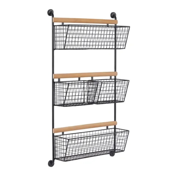 Kirkland’s Home Wall Storage-Black Metal 4-Basket Wall Shelf
