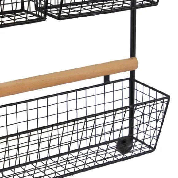 Enhance The Farmhouse Feel Of Your Space With This Black Metal 4-Basket Wall Shelf. Offering Plenty Of Space For Linens And Decor, Its Organizing Possibilities Are Endless! Plaque Measures 18.3L X 5.85W X 31.3H In.Crafted Of Metal And Woodblack Metal Finishbrown Wood Rod Finishfeatures Four (4) Hanging Basketsrectangular Shape With Curved Sidesweight: 4.1 Lbs.Hangs From Back-Mounted Hardwarecare: Dust With A Soft, Dry Cloth.This Item Is Available At Kirklands.Com Only, Not Available In Stores. Please Note: This Item Cannot Be Shipped To Apo/Fpo Addresses.