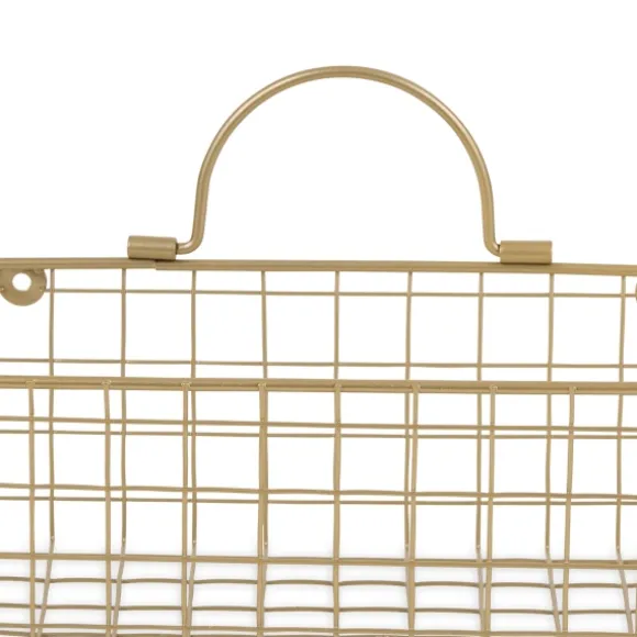 Keep Your Space Looking Clean And Clutter-Free With This Set Of Gold Metal Wire Cage Wall Baskets! You’Ll Love How They Organize Small Items With Sleek, Chic Style. Set Includes Two (2) Basketseach Basket Measures 11.8L X 5.5W X 4H In.Crafted Of Metalgold Finishwire Caged Basket Designweight Capacity: 20 Lbs. Per Baskethangs From Back-Mounted Hardwarecare: Dust With A Soft, Dry Cloth.This Item Is Available At Kirklands.Com Only, Not Available In Stores. Please Note: This Item Cannot Be Shipped To Apo/Fpo Addresses.