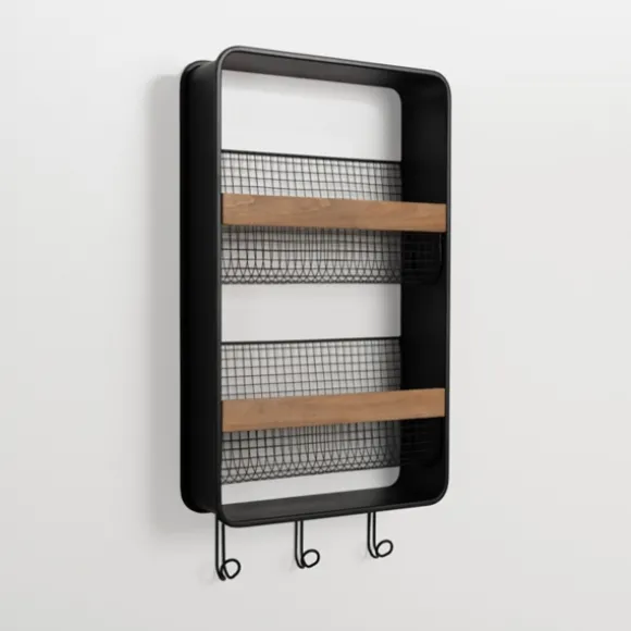 Keep Magazines, Documents, And Mail Organized With This Metal And Wood Wall Magazine Rack. Its Convenient Hooks Are Ideal For Hanging Keys, Jackets, And Bags! Rack Measures 15L X 4.5W X 28.5H In.Crafted Of Metal And Woodblack Finishnatural Wood Accentsfeatures Two (2) Baskets And Three (3) Hooksbasekt And Hook Weight Capacity: 5 Lbs. Eachhangs From Back-Mounted Hardwarecare: Dust With A Soft, Dry Cloth.Contact Your Local Kirkland’S Store For Availability. Quantities And Selection May Vary By Location.