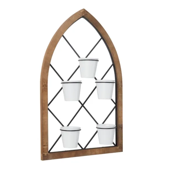 Display Your Five Favorite Houseplants In A Unique Way With This Traditional Arch Metal Wall Planter! It Is Sure To Make A Timeless, Lovely Centerpiece On Any Wall. Plaque Measures 20L X 5W X 32H In.Crafted Of Wood, Metal, And Plasticbrown Wood Frame Finishblack Metal Diamond Shaped Grill Designfeatures Five (5) Plastic Pots With A White Finisharched Shapehues Of Brown, Black, And Whiteweight: 6.7 Lbs.Hangs From Back-Mounted Hardwarecare: Dust With A Soft, Dry Cloth.This Item Is Available At Kirklands.Com Only, Not Available In Stores. Please Note: This Item Cannot Be Shipped To Apo/Fpo Addresses.Warning:Cancer And Reproductive Harm – For More Information Go Towww.P65Warnings.Ca.Gov .